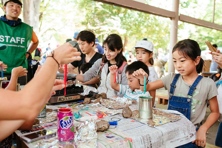 - 火おこし体験や、テントの博覧会、災害時にも役立つキャンプテクニックなど、大人も子どもも楽しめるブースがいっぱい!